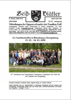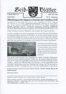 Geschichte des Zeiss-Familienverbandes". In Heft 5+6 kann der Vortrag